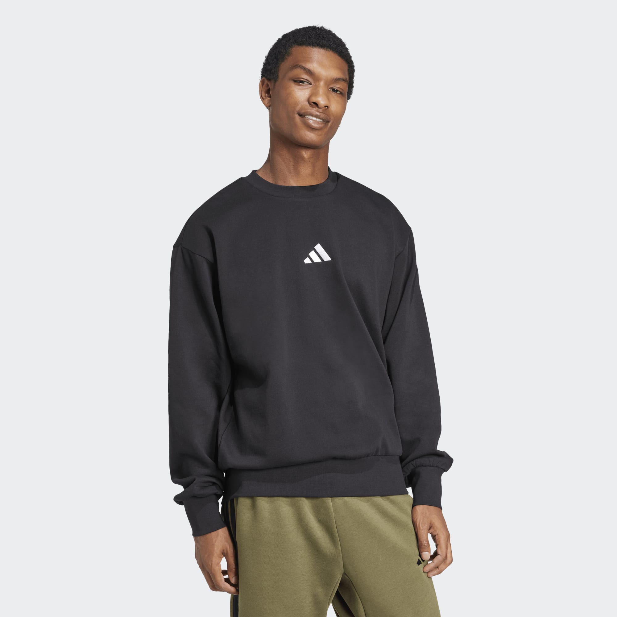 Introducing the Essentials FeelCozy Fleece Sweatshirt, a modern design for the man who values comfort and style. Made with Better Cotton and recycled Polyethylene Terephthalate, this knit sweatshirt features an updated fit with dropped shoulders and a slightly shortened back length. The embroidered three-bar logo adds a touch of classic adidas branding. This sweatshirt is not just a piece of clothing, it’s a commitment to sustainability and fine-tuned details.