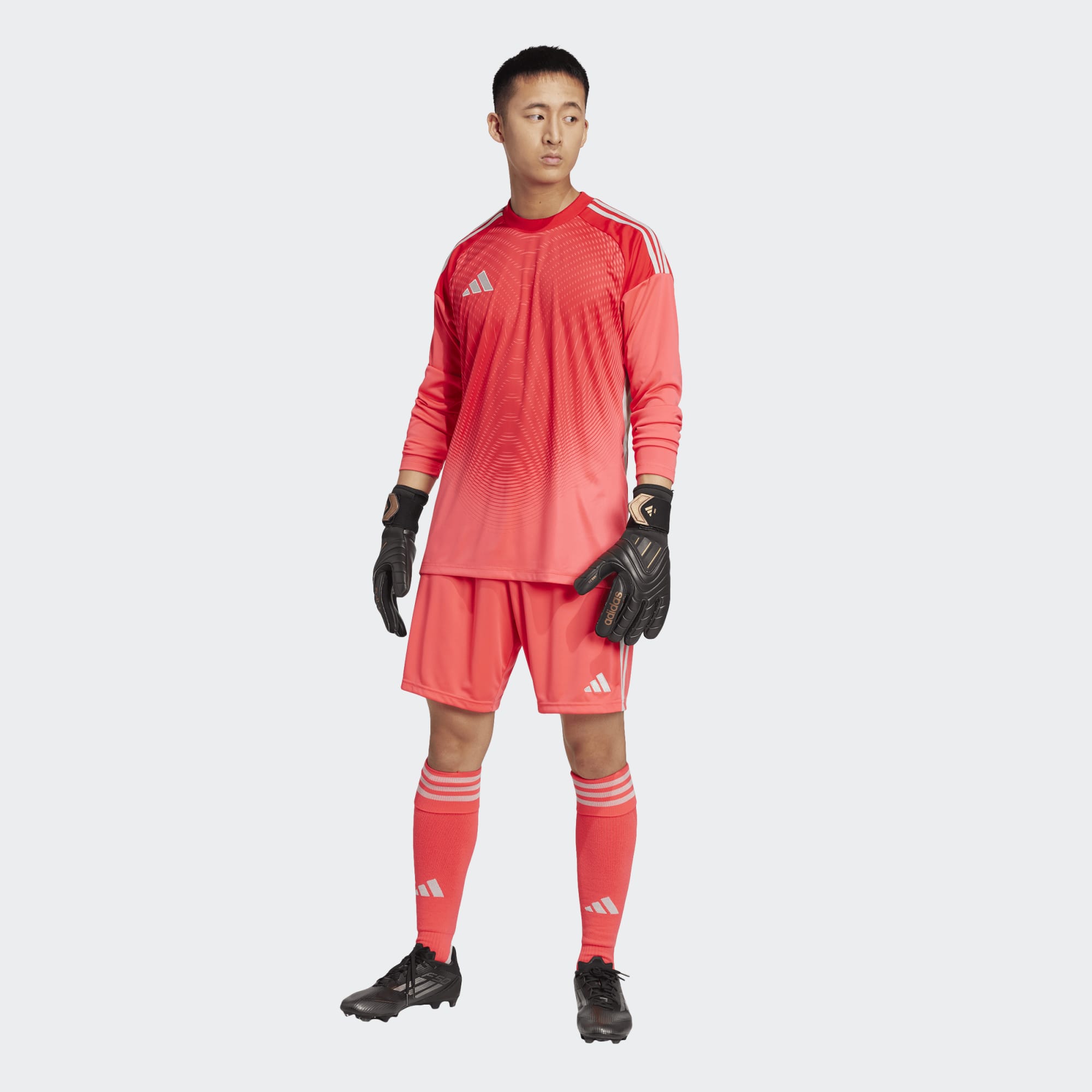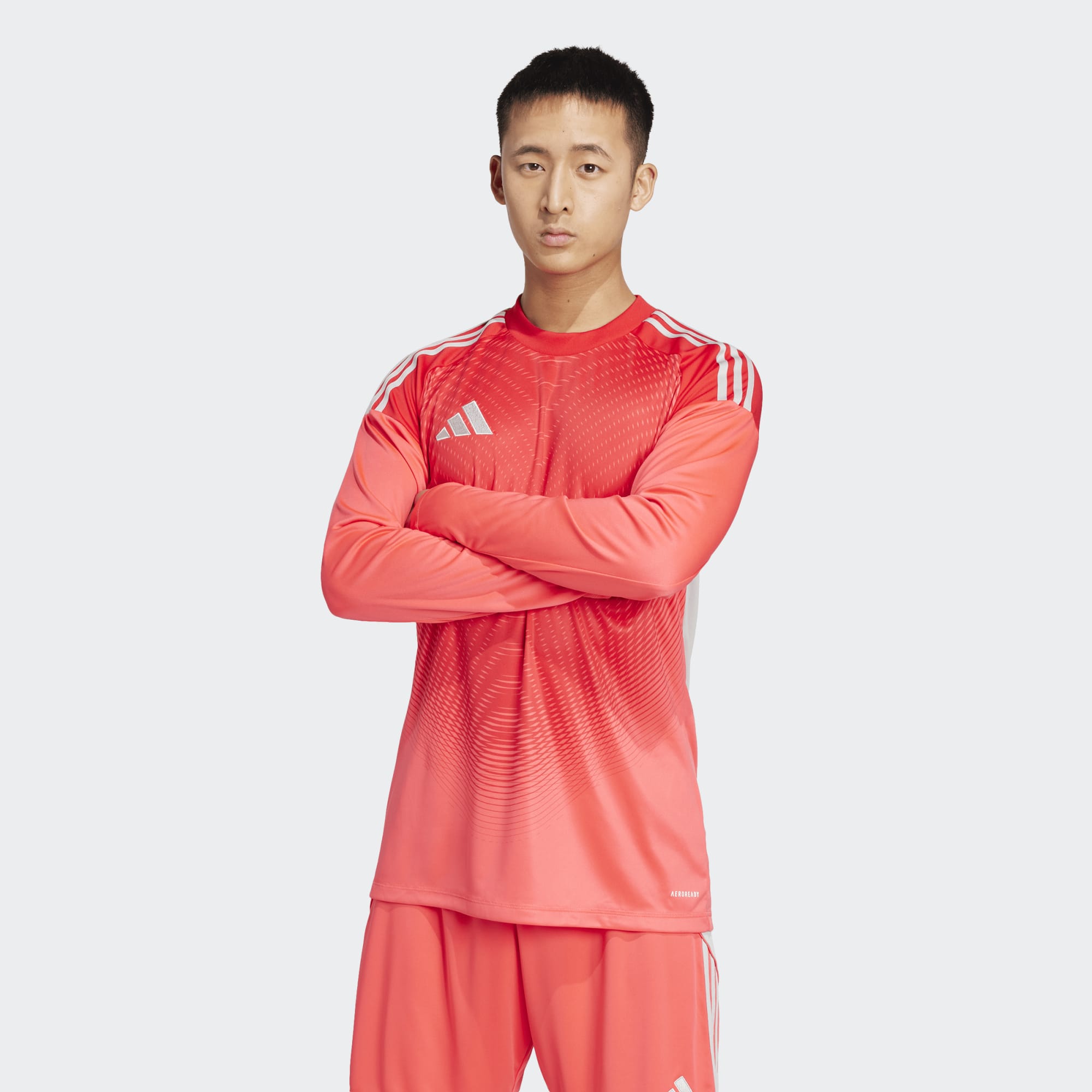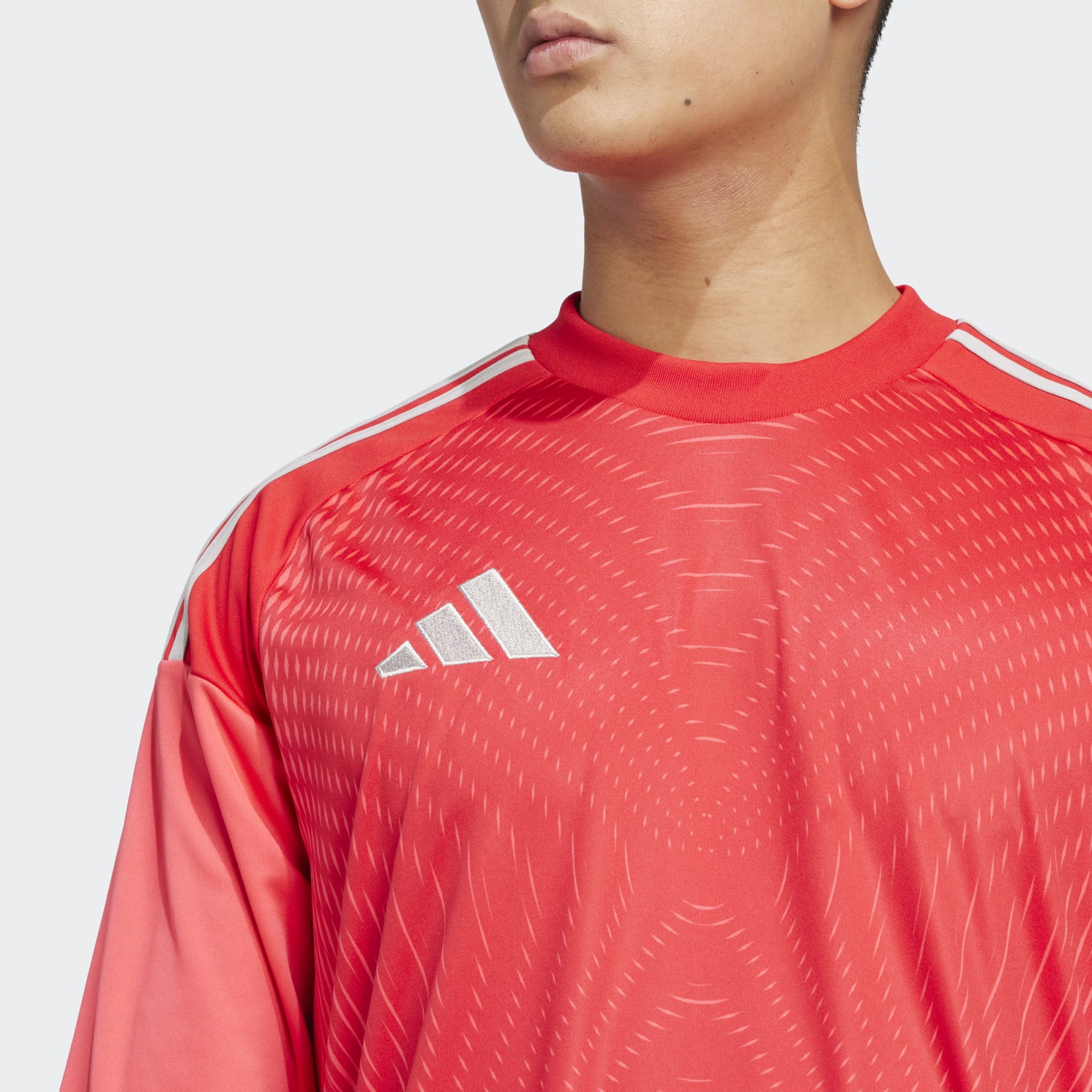 Stand tall between the posts in the Tiro25 Competition Goalkeeper Jersey. This long-sleeve jersey, made with 100% recycled polyester, offers a slim fit for optimum movement and comfort. Enhanced with Aeroready technology to manage sweat, it ensures a dry and comfortable experience on the pitch. The design mirrors that of the Tiro25 Pro styles, making it an ideal choice for both amateur goalkeepers and fans alike.